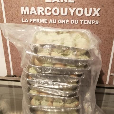 10 barquettes de 12 escargots présentés dans une coquille croustillante, accompagnés d'une farce Bourguignonne. Tout se mange!