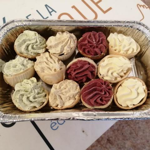 Une douzaine d'escargots présentés dans une coquille croustillante, accompagnés de différentes farces : à la bourguignonne, au fromage de Langres, à la tomate et aux champignons. Tout se mange et il y en a pour tous les goûts !